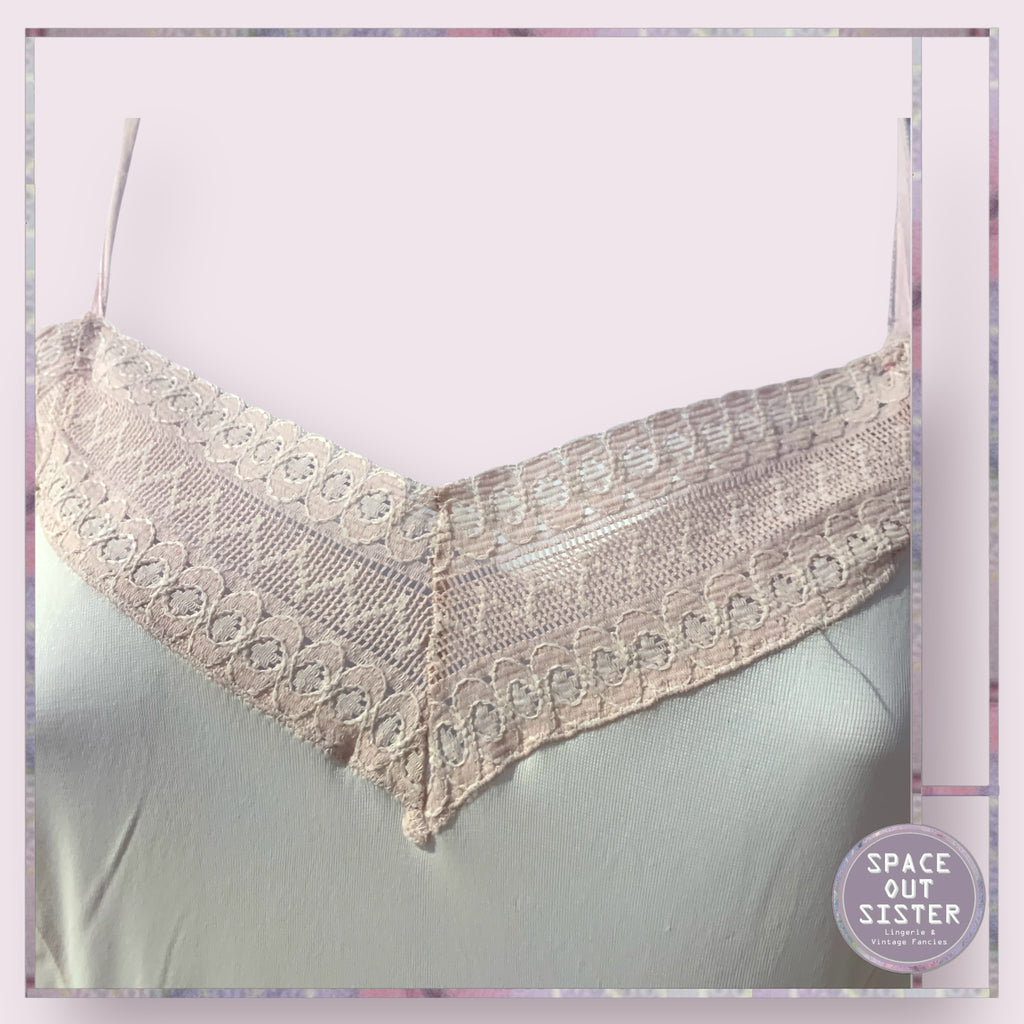 Slip into something a little more fabulous with our Vintage Crochet Lace Slip! Drenched in delicate pink, this beauty boasts a crochet lace neckline that’s as charming as a kitten in a bow tie.